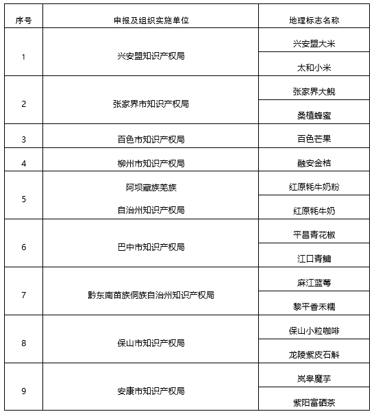 根据《国家知识产权局办公室中国足彩网:印发〈地理标志运用促进工程实施方案〉并组织推荐2019年项目申报的通知》(国知办发运字〔2019〕26号),聚焦地理标志助力精准扶贫,经地方知识产权局自愿申报、省级知识产权局审核推荐、我局综合评定并公示,现确定兴安盟知识产权局等单位申报的14个项目为2019年地理标志运用促进工程项目(名单见附件),重点围绕“兴安盟大米”等25件地理标志实施地理标志运用促进工程。