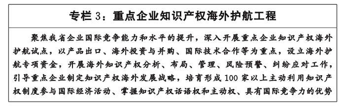 ——知识产权保护提能增速。知识产权保护体系更加健全,知识产权全链条保护优势有效发挥,侵权易发多发现象得到有效遏制,基层知识产权保护能力明显增强,企业海外知识产权保护体系逐步健全,外资企业、民营企业知识产权依法平等保护,中小企业、专业市场、展会等重点领域知识产权保护水平明显提升,知识产权制度激励创新的保障作用充分发挥,知识产权示范市(州)、示范县(市、区)覆盖率以及知识产权保护社会满意度稳步提升,尊重知识价值的营商环境持续优化。