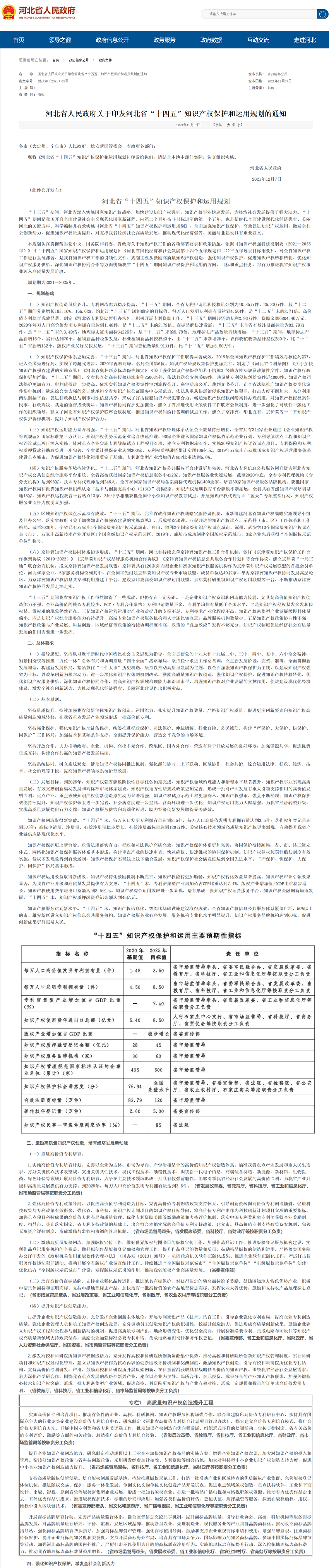 十四五规划|河北省“十四五”知识产权保护和运用规划