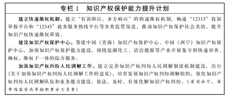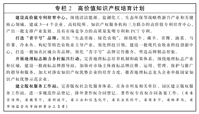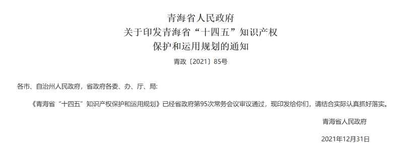 青海省“十四五”知识产权保护和运用规划